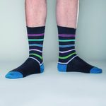 De lijnen in de Eric Strapton zijn sober en symmetrisch. Deze kous doet beheerst frivool aan. Een klassieker in wording wie ze andurft met fluo sportschoenen.