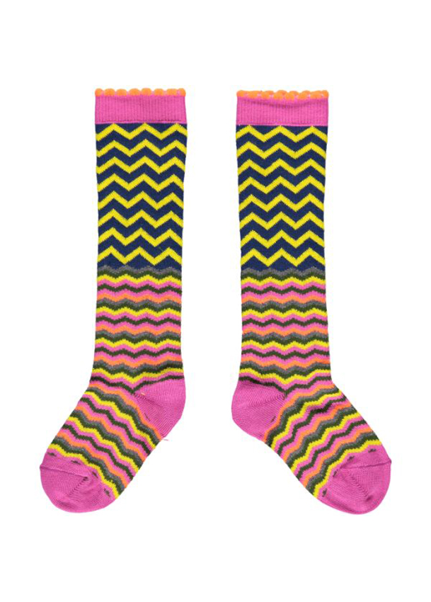 Helemaal LE BIG, deze vrolijke zigzag kniekousen met een mix van kleuren. Geel, donker blauw, fluo oranje, paars,.... Bovenzijde afgezet met fluo oranje boordje en natuurlijk, het nooit ontbrekende strikje in fluo oranje op de buitenzijde! 80% organisch katoen - 15% Polyamide - 6% Elesthan LE BIGNederlands merk Klik hier om meer artikelen te bekijken van merk LE BIG. |